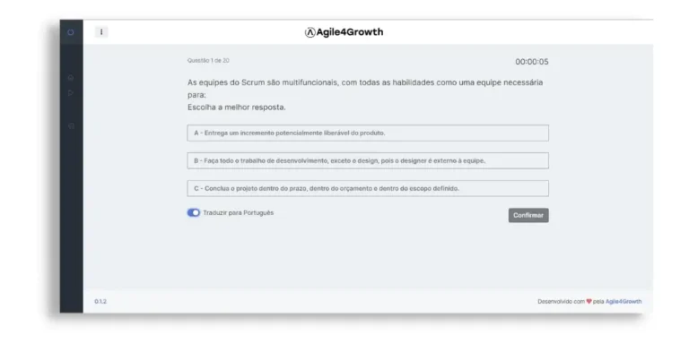Plataforma desenvolvida pela Agile4Growth simulando um ambiente real de prova para você praticar ao máximo com nossos simulados e questões com soluções.
