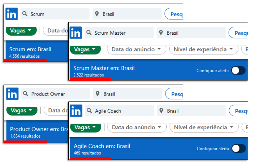 Em uma busca no LinkedIn por vagas de “Scrum”, “Scrum Master”, “Product Owner” e “Agile Coach”, podemos ver milhares de vagas abertas.