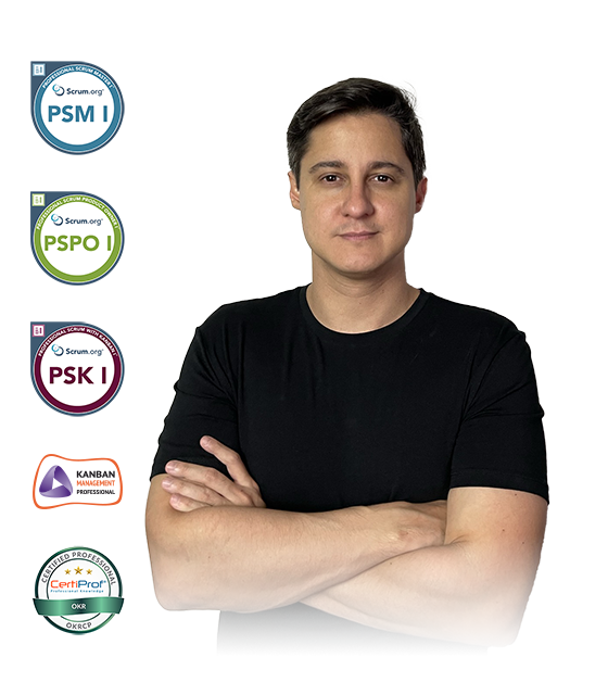 Estudar com a Agile4Growth é uma experiência de ensino completa. Além de fazer um curso completo sobre Scrum, você terá um preparatório passo a passo para você conquistar suas certificações Professional Scrum Master I (PSM I), Professional Scrum Product Owner I (PSPO I) e Professional Scrum with Kanban I (PSK I).